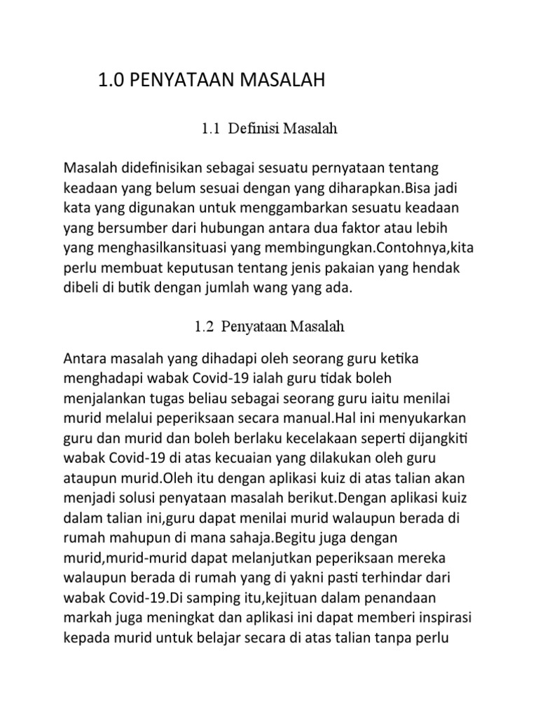 38 40 38 found this document useful 40 votes 12K views 28 pages. 11penyataan masalah pengurusan kuiz sedia ada smk datok lokman masih. 11penyataan masalah pengurusan kuiz sedia ada smk datok lokman masih.
